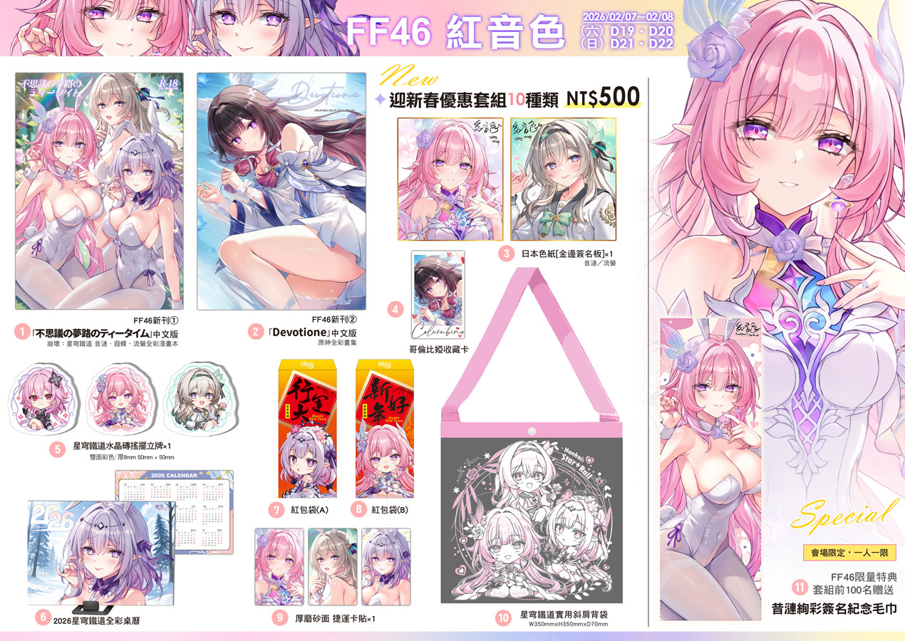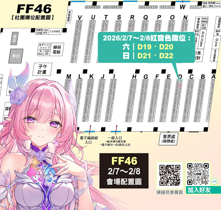 ✦2/7~2/8【FF46 開拓動漫祭】紅音色攤位:六 D19・D20/日 D21・D22,地點:花博爭艷館✦